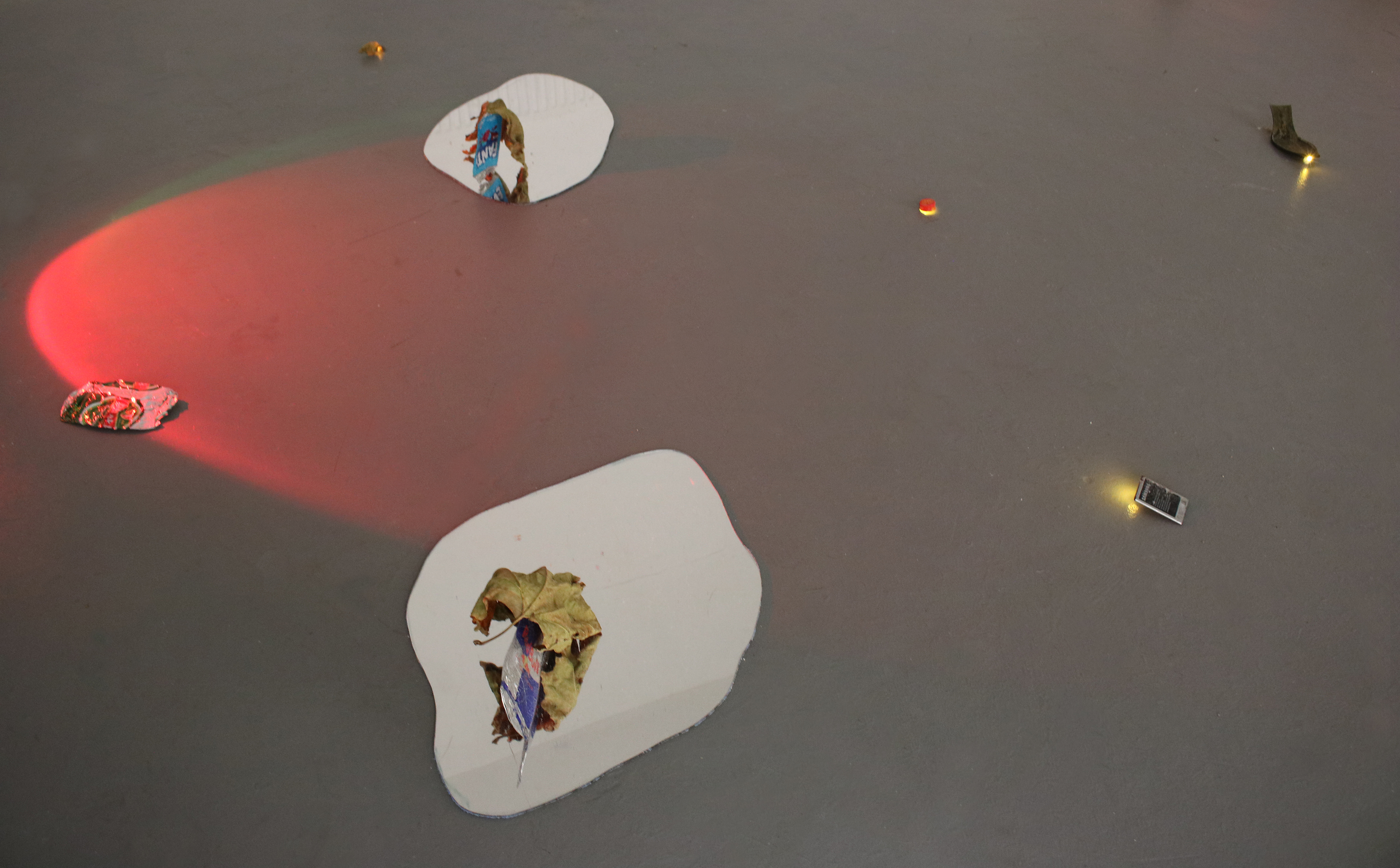 This installation consists of urban traces I collected during a week of night walks. Taking place along the W Green Road route between Seven Sisters Station and 55 Avenue (my home), these walks were shaped by my habit of looking down due to the unease I often experience as a woman. This habit evolved into a practice of noticing and collecting small things, which gradually turned into a game. The rule of this game was simple to notice and gather all the fragments I could see and carry over the course of the week. As part of the installation, I also included a soft vocal element — a song I often found myself humming quietly when fear arose during my walks. This hum, blending with the ambient city noise, forms a subtle soundscape that accompanies the fragments on the gallery floor. It was my way of protecting myself, a personal rhythm woven into the rhythm of the city. The collected fragments are spread across the gallery floor and transformed by moving night lights projected onto them. The lights and shadows reshape the installation with each participant’s movements. In this way, the objects and their entangled beings are constantly redefined, producing new relations each time.This installation is the first gesture of an ongoing research — a practice I intend to repeat , discover and expand in every city I inhabit, as a way of continually rediscovering what the city hides beneath our feet. And also try different way of displaying/working.